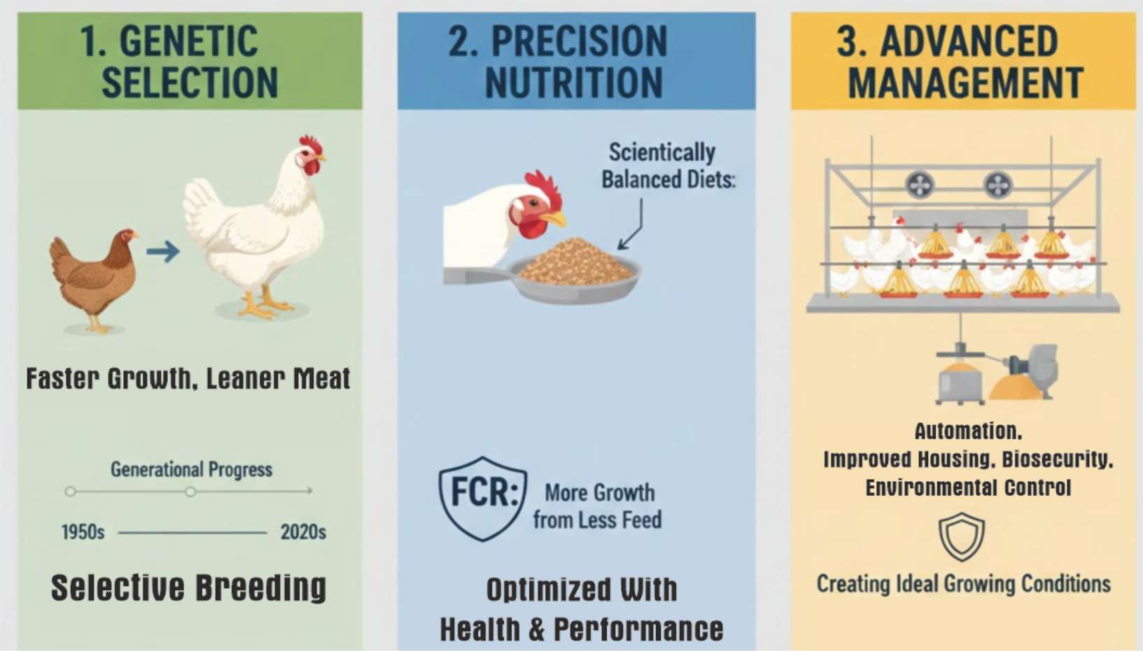 3. Genetics, nutrition, and management: the true drivers of broiler growth and egg production