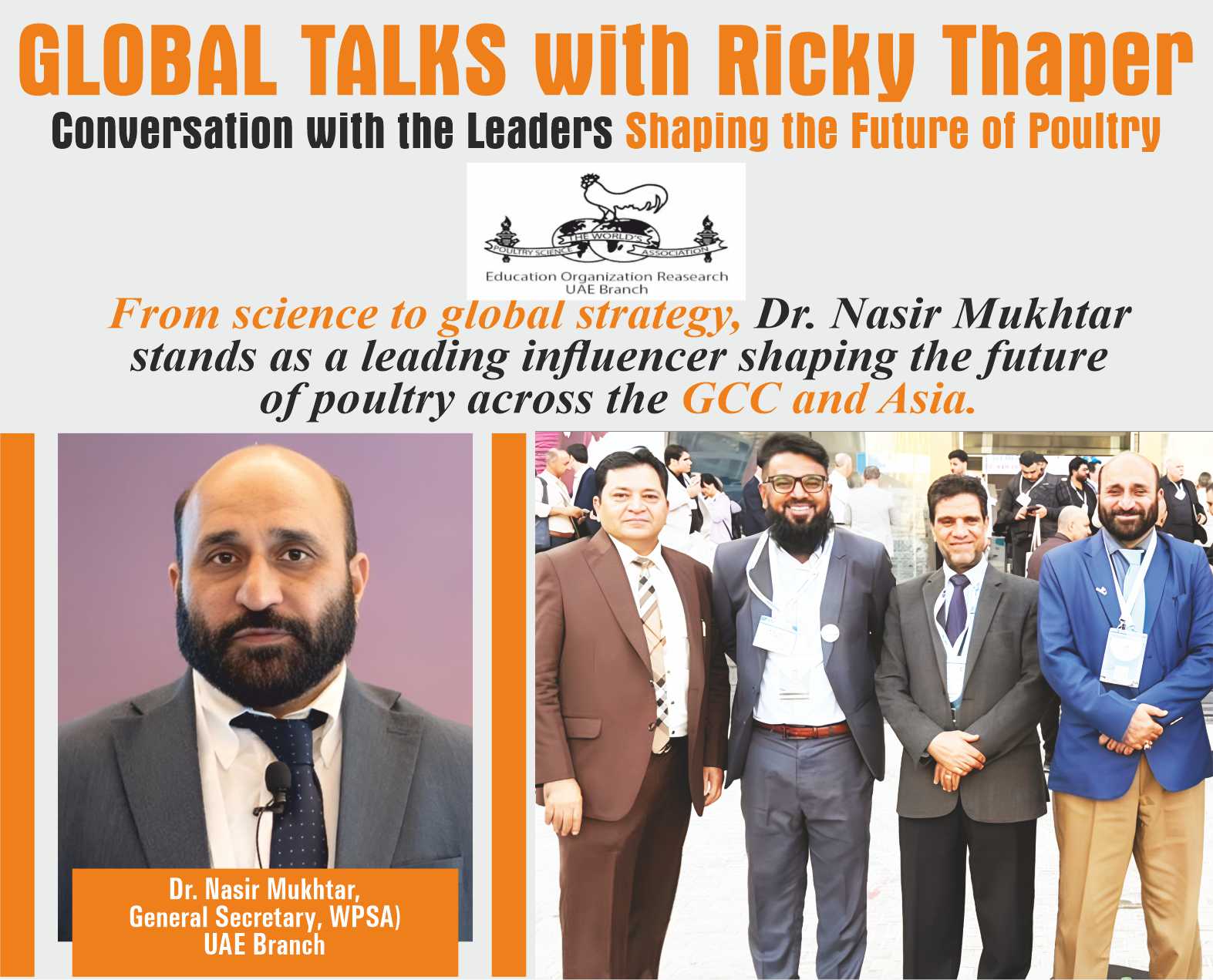 The 5th Edition of the Global Talks series presents an in-depth conversation with Dr. Nasir Mukhtar, a globally recognized leader and influential voice shaping the poultry industry across the GCC and Asian regions. The discussion explores the rapidly evolving landscape of poultry science, industry leadership, and knowledge-driven innovation that is redefining the future of global poultry production. With decades of experience spanning academia, industry, and international poultry organizations, Dr. Mukhtar has played a transformative role in advancing poultry science while strengthening industry–academia collaboration. Currently serving as the General Secretary of the World’s Poultry Science Association (WPSA), UAE Branch, he actively champions the integration of scientific research with practical industry solutions, the development of young professionals, and the resolution of emerging challenges through global cooperation and informed leadership.