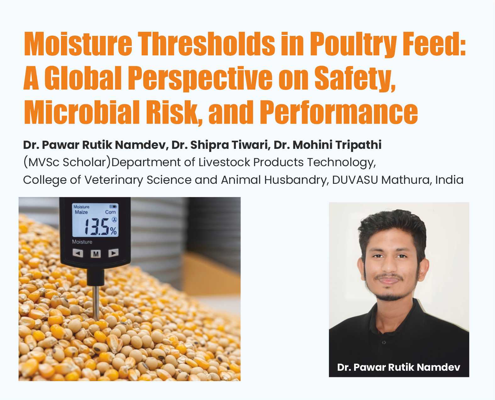 Effective moisture management in poultry feed is fundamental to ensuring feed hygiene, animal health, and overall food safety. Elevated moisture levels promote the growth of harmful microorganisms and the accumulation of toxic metabolites, leading to severe implications for poultry health, productivity, and farm economics.By adopting preventive strategies in feed production, storage, and quality monitoring, producers can safeguard feed integrity and protect flock performance. Moisture control should be recognized not as an operational expense but as a strategic investment in animal welfare, economic sustainability, and public health protection.