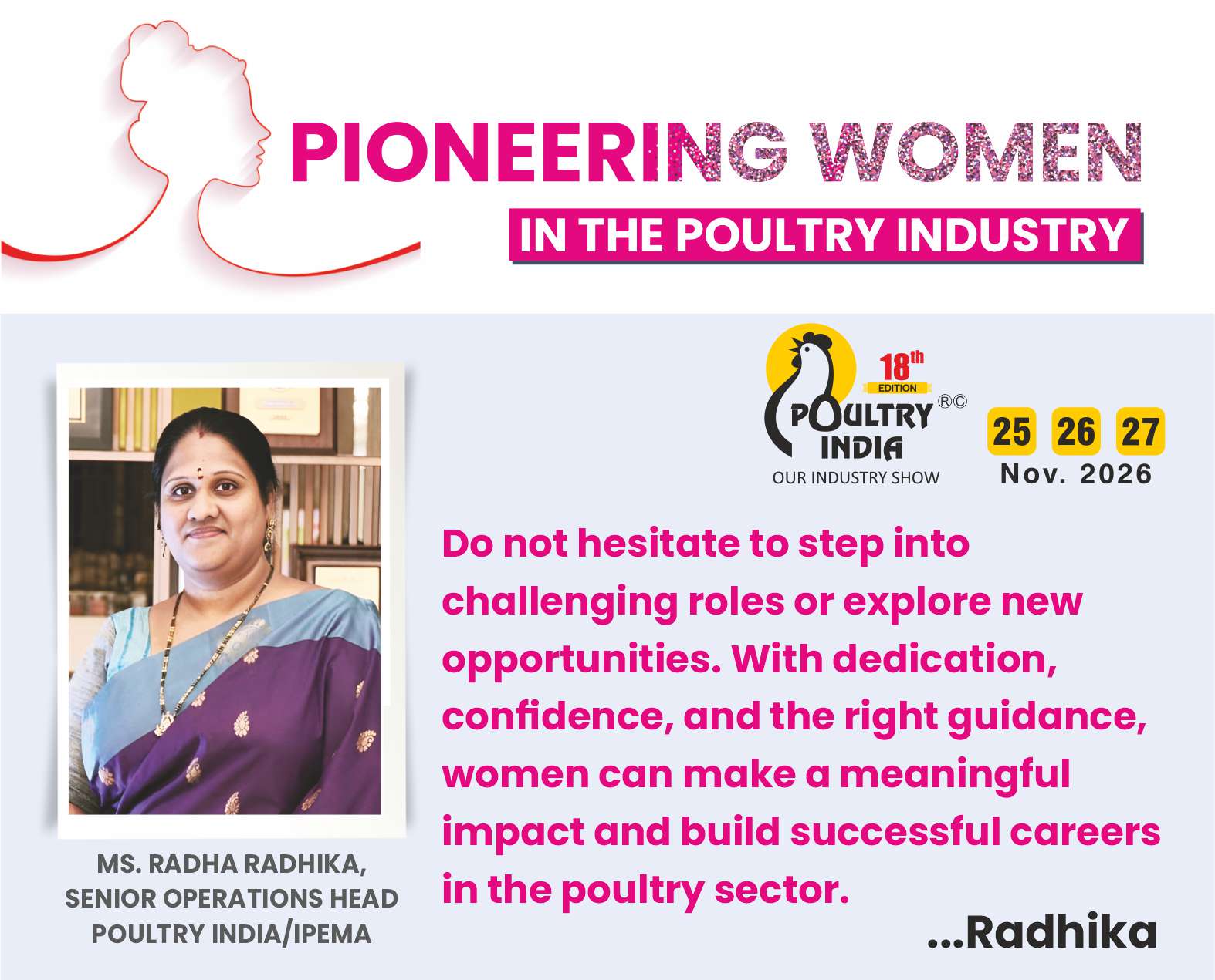 As part of Poultry Creations’ “Pioneering Women in the Poultry Industry” feature, we are pleased to present Ms. Radha Radhika in conversation with Poultry Creations, where she shares her journey, leadership experiences, and vision for the future of the poultry sector.