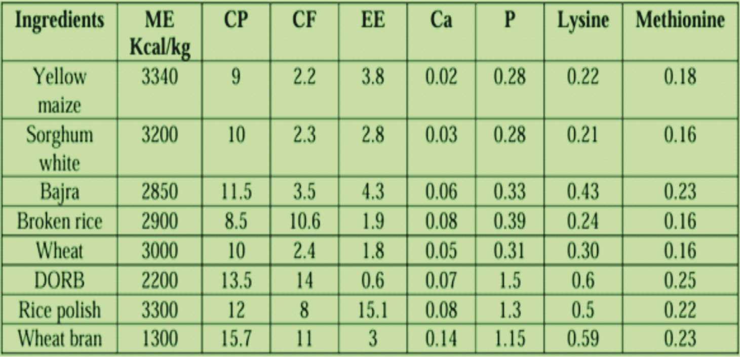 Feed ingredients for poultry